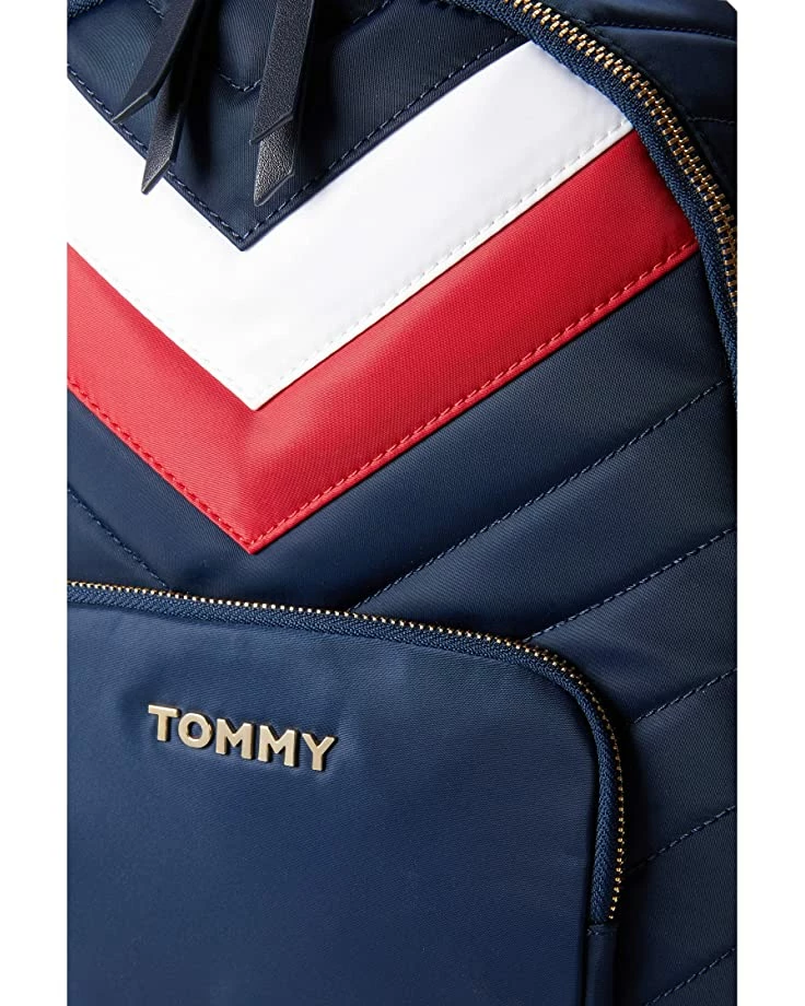- Enjoy your weekend travels packing your essentials inside the Tommy Hilfigerยฎ Charlize Backpack Solid Nylon Backpack. It comes with the signature brand detailing on the front.