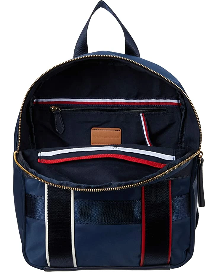 - With its durable nylon construction and faux-leather detail, carry it all easily in the Tommy Hilfiger® Grace Backpack with a top carry handle and adjustable shoulder straps.