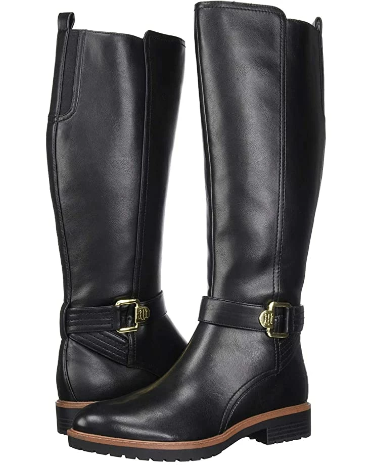 - With its buckle strap decor and shaft goring, flaunt some riding-inspired style this season wearing the faux-leather Tommy Hilfiger® Frankly 2 zipper boot.
