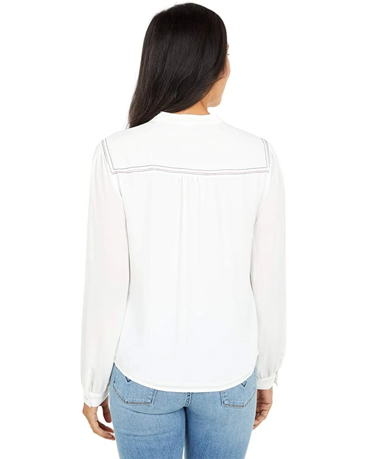 - A soft poly knit will have you feeling comfy all season long with the Tommy Hilfiger® Long Sleeve Button Front Woven Top.