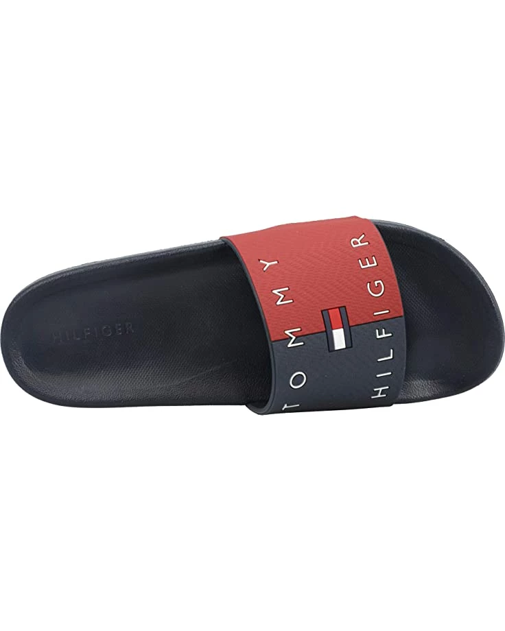 - Take the day on in the Tommy Hilfiger® Ranel featuring a classic slip-on slide sandal boasting branding details on strap. Available in two color options.