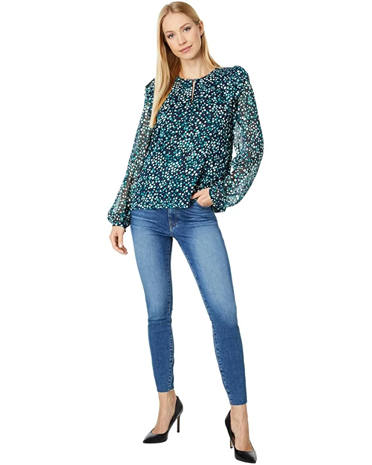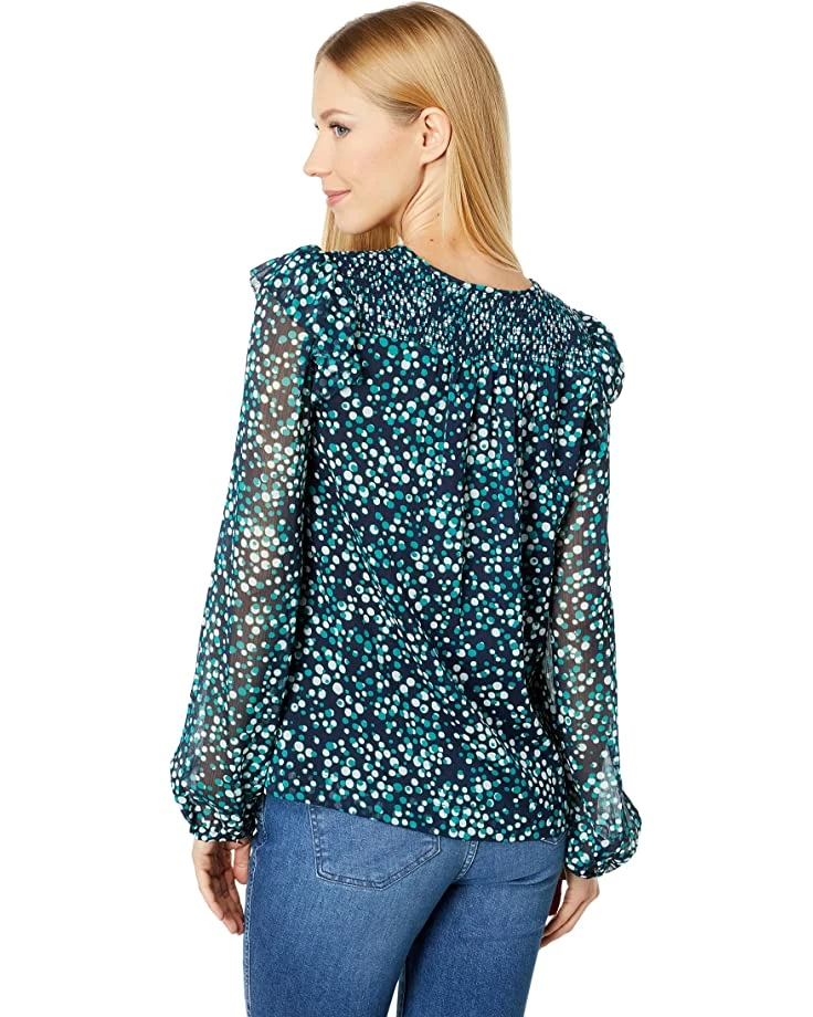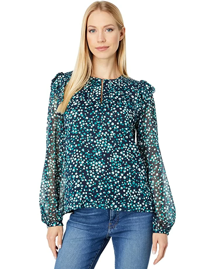 - Flaunt a subtle yet attractive look wearing the versatile Tommy Hilfiger® Long Sleeve Dot Ruffle Blouse.
