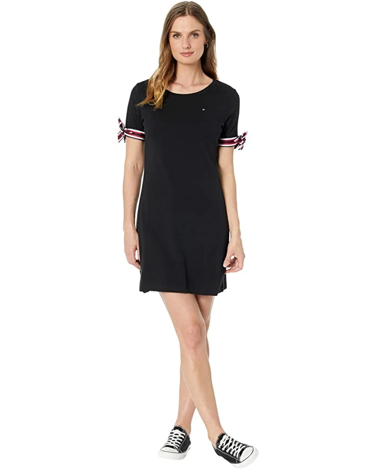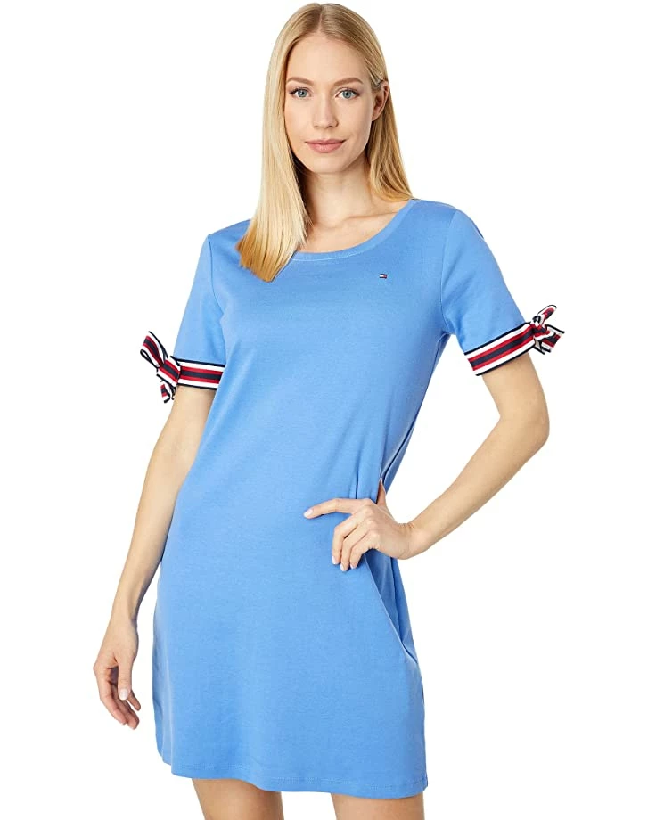 - Don a comfortable yet stylish casual outfit for your everyday look wearing the Tommy Hilfiger® Short Sleeve Tie Sleeve Dress.