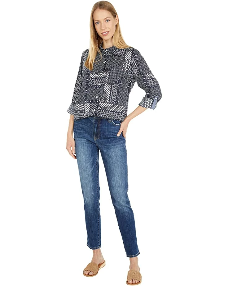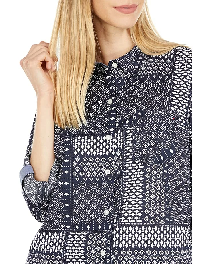 - Who said your every day aesthetic had to be predicted? Wear the Tommy Hilfigerยฎ Palm Roll Tab shirt featuring a classic long sleeve shirt with full front button closure and pointed collar boasting all over patchwork and the roll-up tab option for added style.