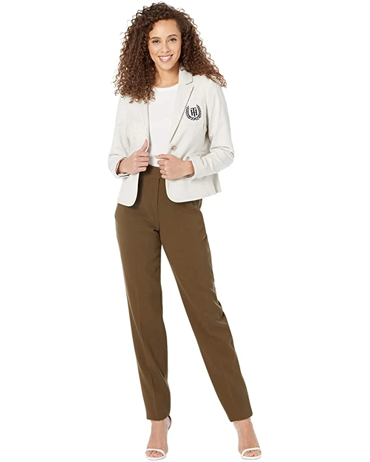 - Redefine your apparel look for work and casual outings wearing Tommy Hilfiger® Two-Button TH Crest Blazer.
