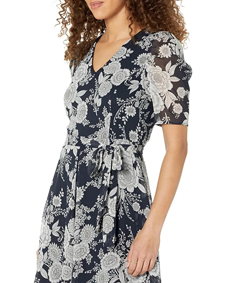 Best Sale ⭐ Tommy Hilfiger👍 Dresses Wallpaper Zinnia Pleated Sleeve Fit-and-Flare ❤️