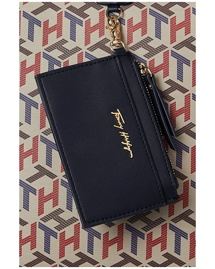 - The sleek Tommy Hilfigerยฎ Hayden Tote Print Smooth Grain PVC is the handbag of your dreams. Spacious main compartment fits a billfold and smartphone plus more; Open top design with magnetic snap closure for easy access.
