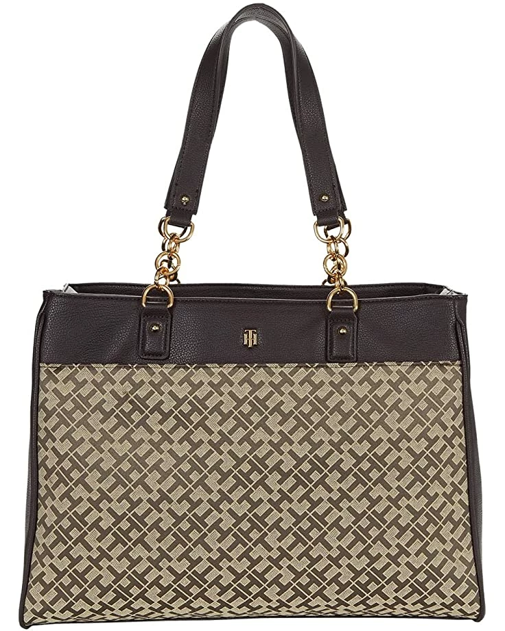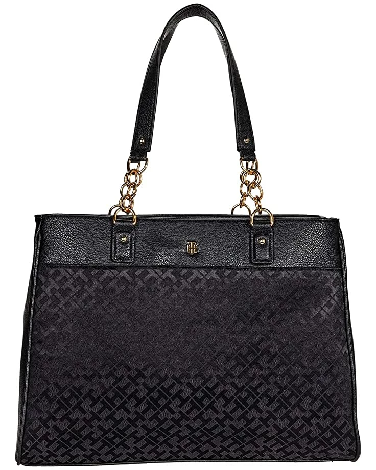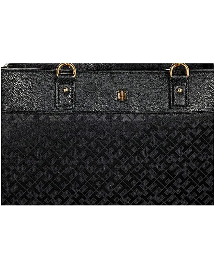- Tommy Hilfiger® Estella II-Tote-Geometric Jacquard adds a certain sophistication to this casual hands-free carry-all.