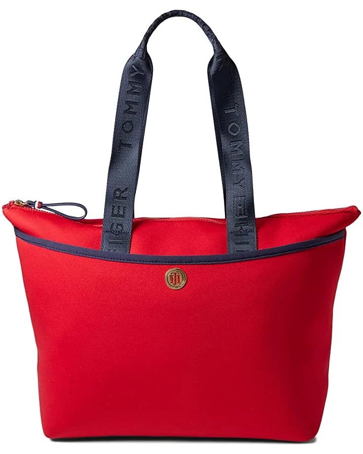 - Carry the Tommy Hilfiger® Sasha II Tote Neoprene Tote bag and keep all your stuff safe and handy while traveling.