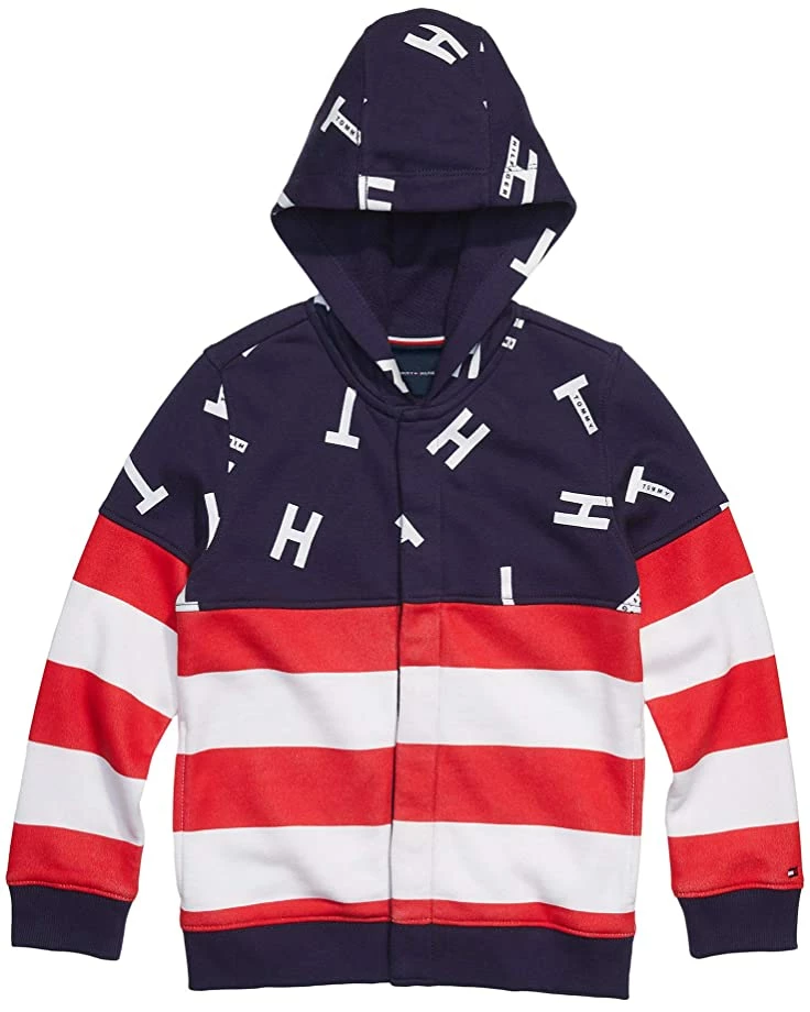 - Keep him warm and colorful Tommy Hilfigerยฎ Jules Hoodie Sweatshirt with Magnetic Front Closure. The brands signature hoodie is made from their addictively soft fleece and just the thing to keep him warm on those in-between days of the season. Part of our Adaptive Collection, designed for ease of dressing in classic Tommy style.