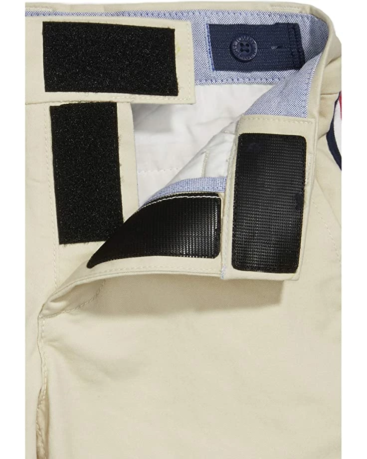 - The Tommy Hilfiger® Adaptive Apparel Signature Stripe Shorts with VELCRO® Closure also feature a button adjustable waistline and belt loops for tailored sizing. Designed with and for people with disabilities.*