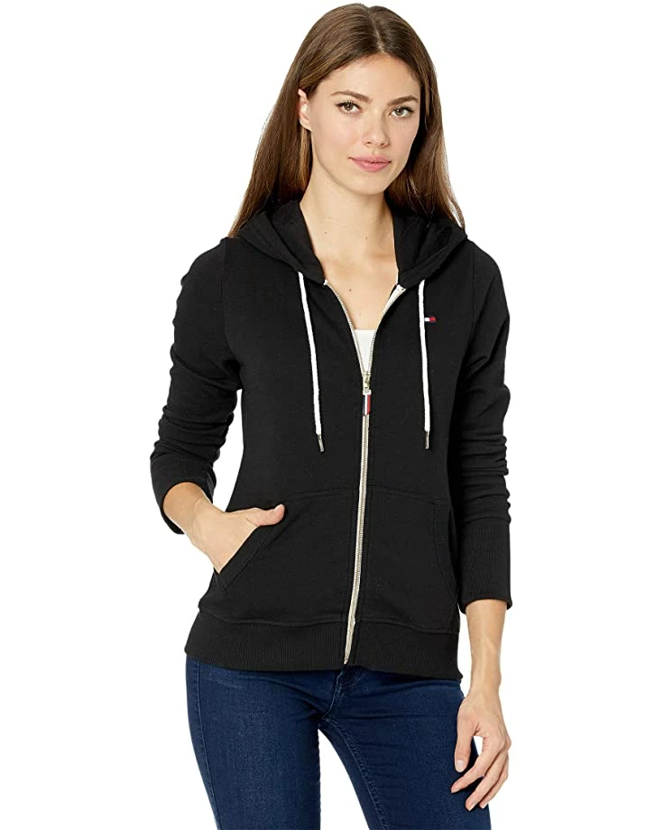 - Salute to style in the Tommy Hilfiger® Flat Zip Hoodie. Attached hood with drawstring ties, long sleeves with banded cuffs and full zipper closure at front.