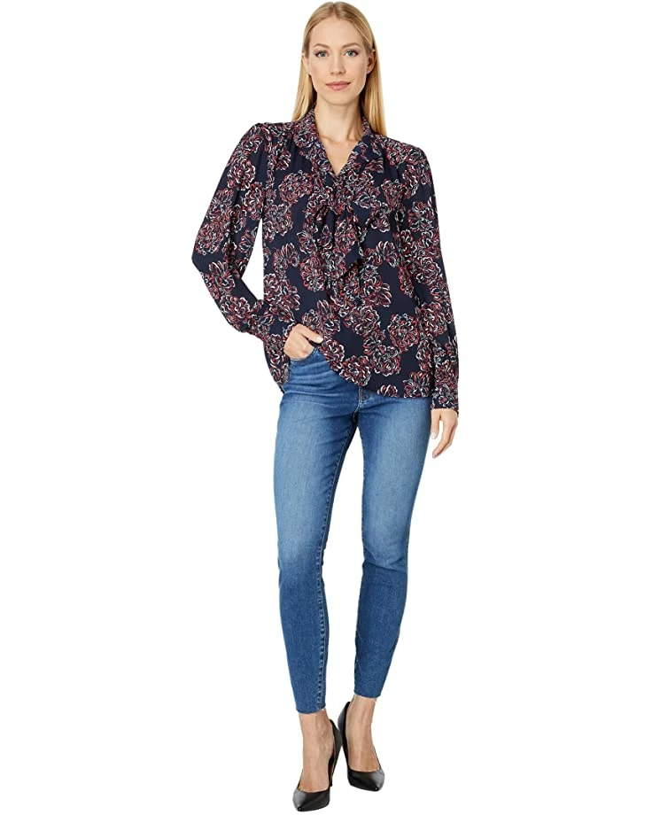 - Showcasing a unique and attractive allover print, the Tommy Hilfigerยฎ Long Sleeve Floral Bow Blouse is perfect for your lunch parties and getaways with friends.
