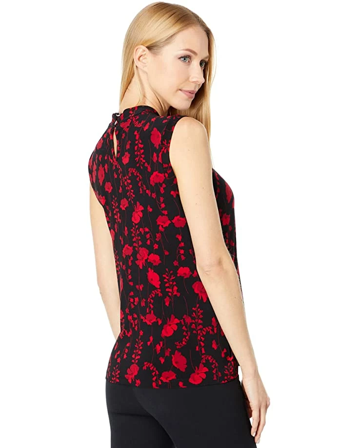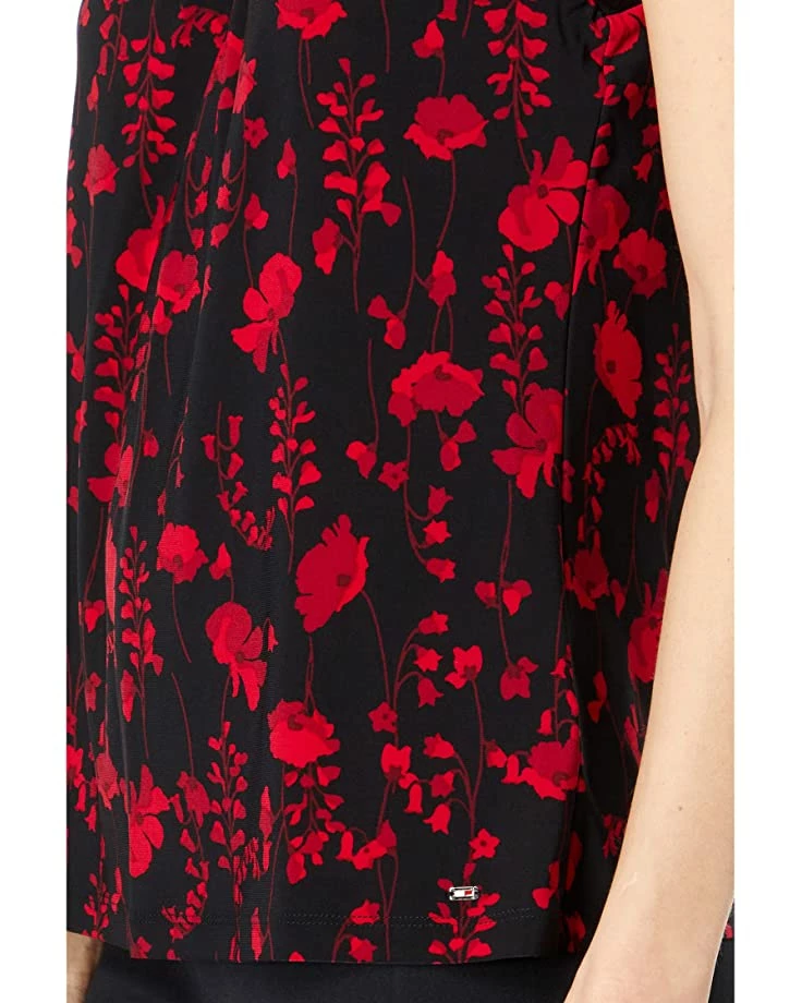 - Featuring a back button closure, add a pop of color to your ensemble wearing the Tommy Hilfigerยฎ Sleeveless Floral Knot Neck Knit blouse.