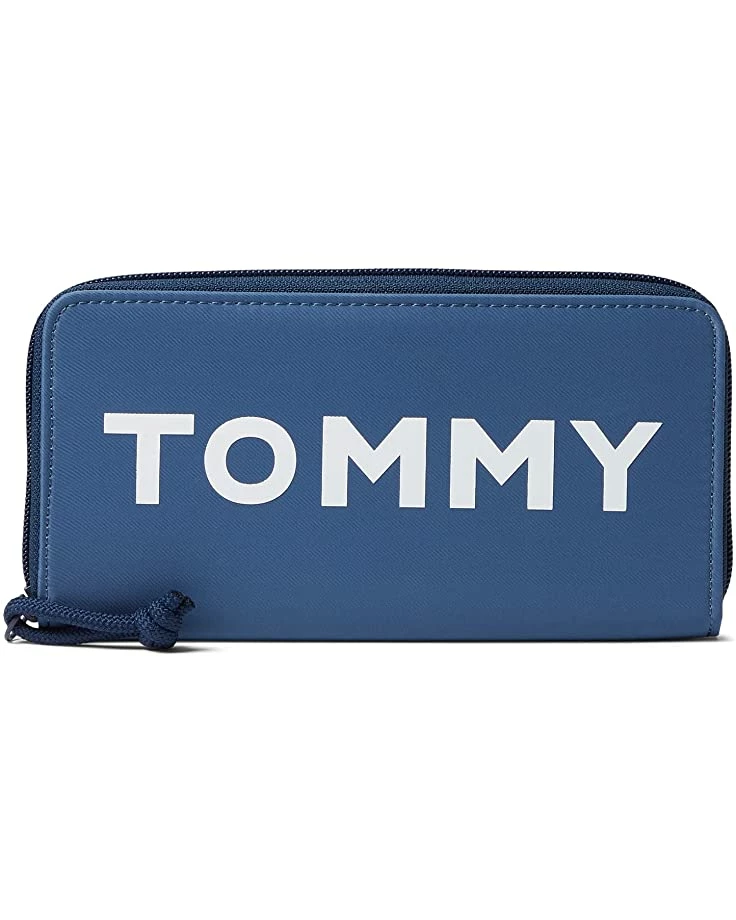 - Organize your everyday shopping essentials getting Tommy Hilfiger® Erin II Zip Around Wallet Bold Logo Color-Block Nylon.