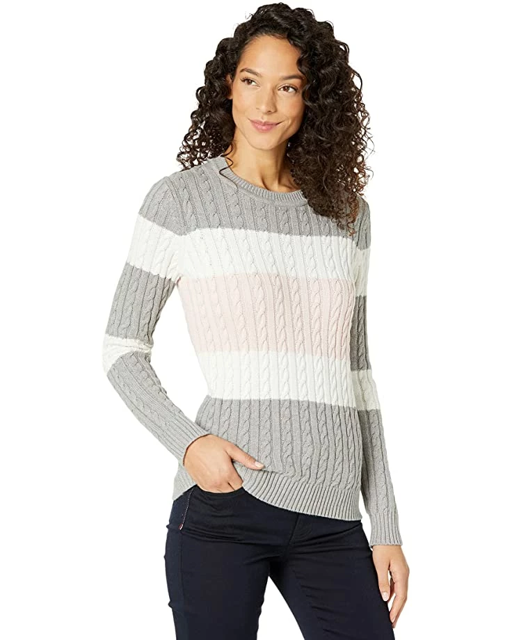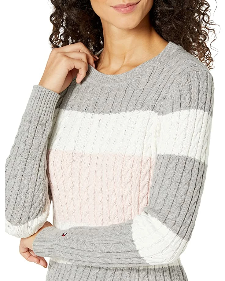 - Cozy and color-blocked with cable knit-stitched detailing, the Tommy Hilfiger® Flag Cate Sweater will keep you feeling chic throughout the colder months.