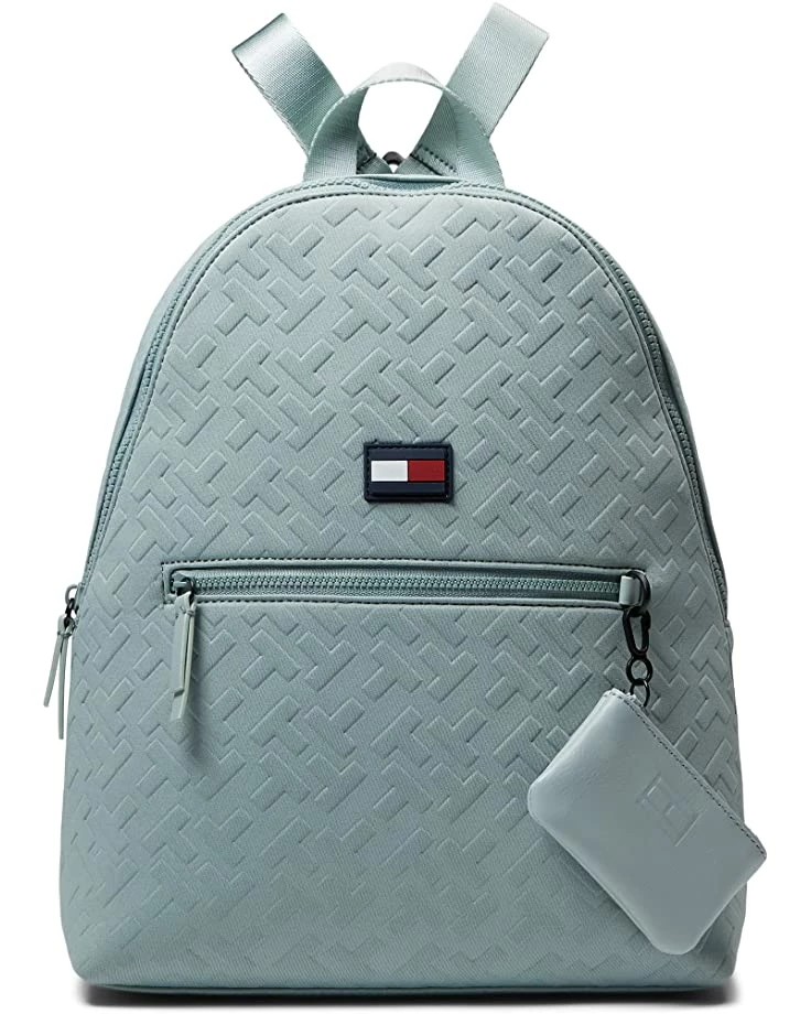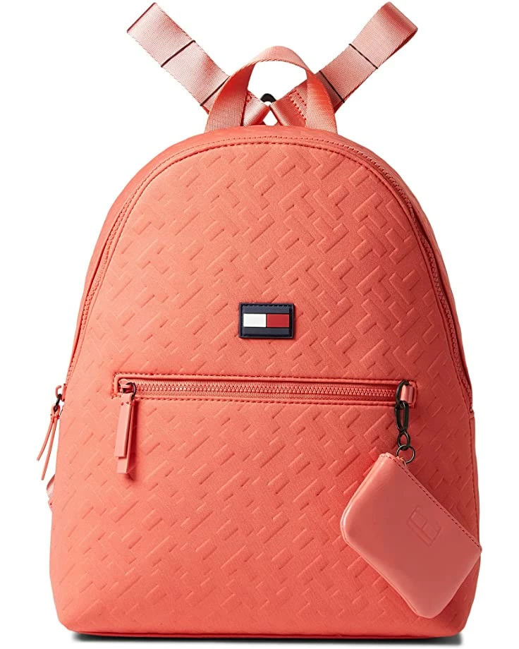 - Make your weekend adventures light and fun! Carry your essentials inside the Tommy Hilfiger® Drew II-Medium Dome Backpack w/Pouch-Bias Debossed Neoprene Backpack. It comes with an allover textured design.