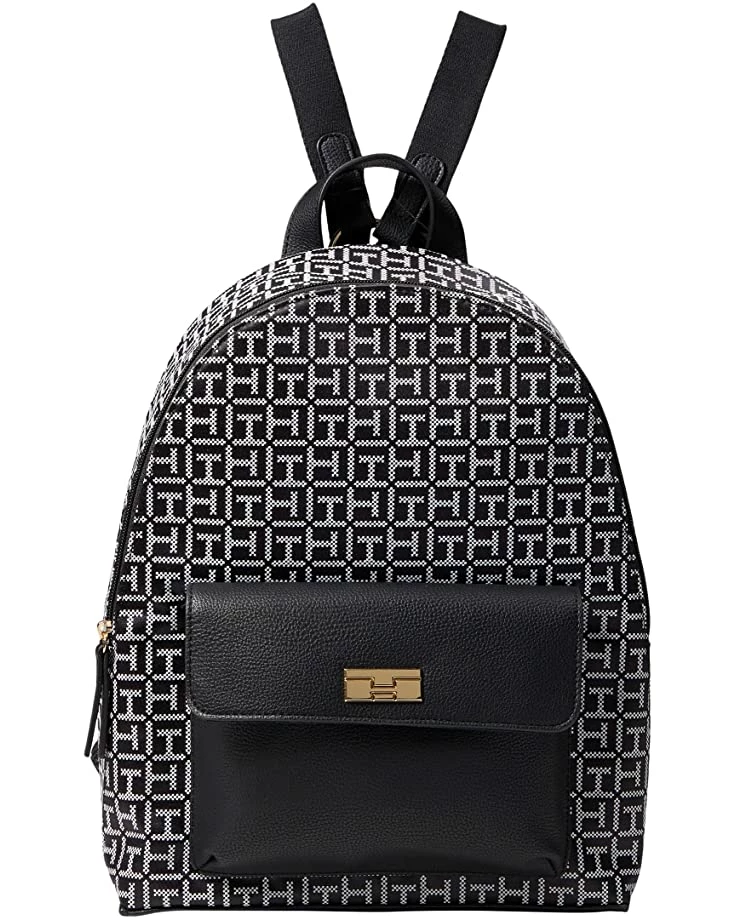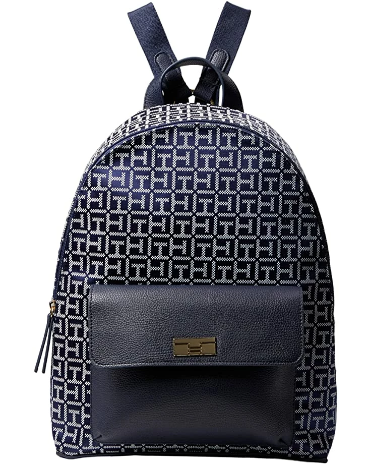 Cheapest ✨ Tommy Hilfiger Backpacks Tiffany II – Medium Dome Backpack – Square Monogram Jacquard w/ Pebble PVC 🤩