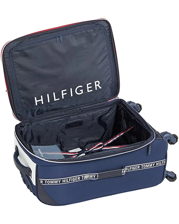 - Iconic Tommy Hilfiger® logos located throughout the luggage.