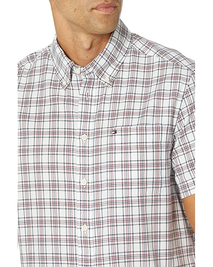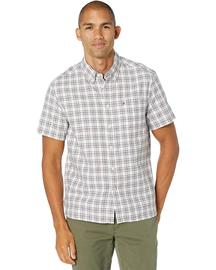 - For a casual yet professional look at the office or out and about,you can’t go wrong with the Tommy Hilfiger® Essentials Short Sleeve Button-Down Shirt in Custom Fit.