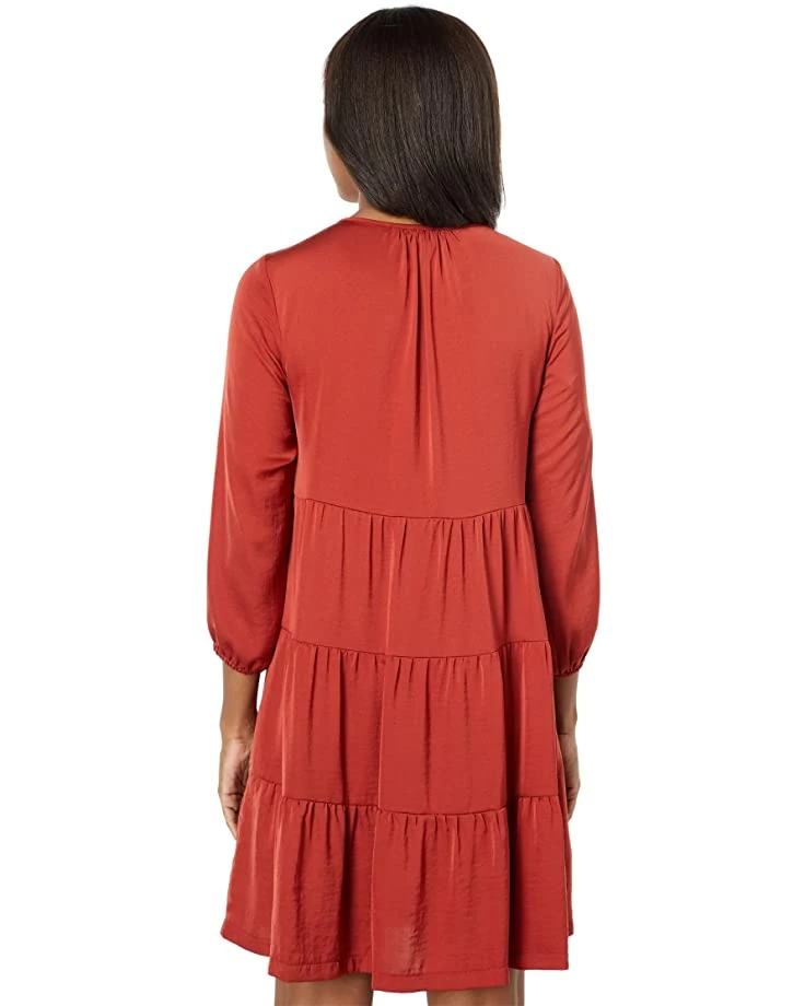 - Crafted for style and comfort, the Tommy Hilfiger® 3/4 Sleeve Ghost Tiered Dress features a rounded neckline, mid-length sleeves elasticized cuffs, layered ruffled design, and a straight knee-length hemline.