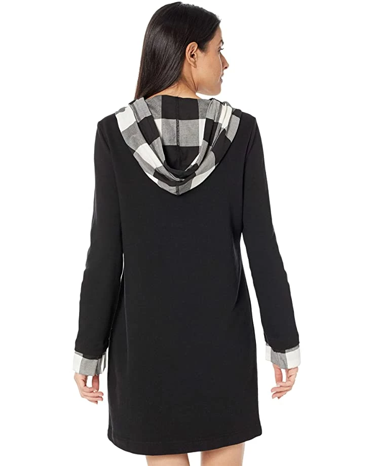 - Versatile dress features attached hood with drawstring for adjustable fit.