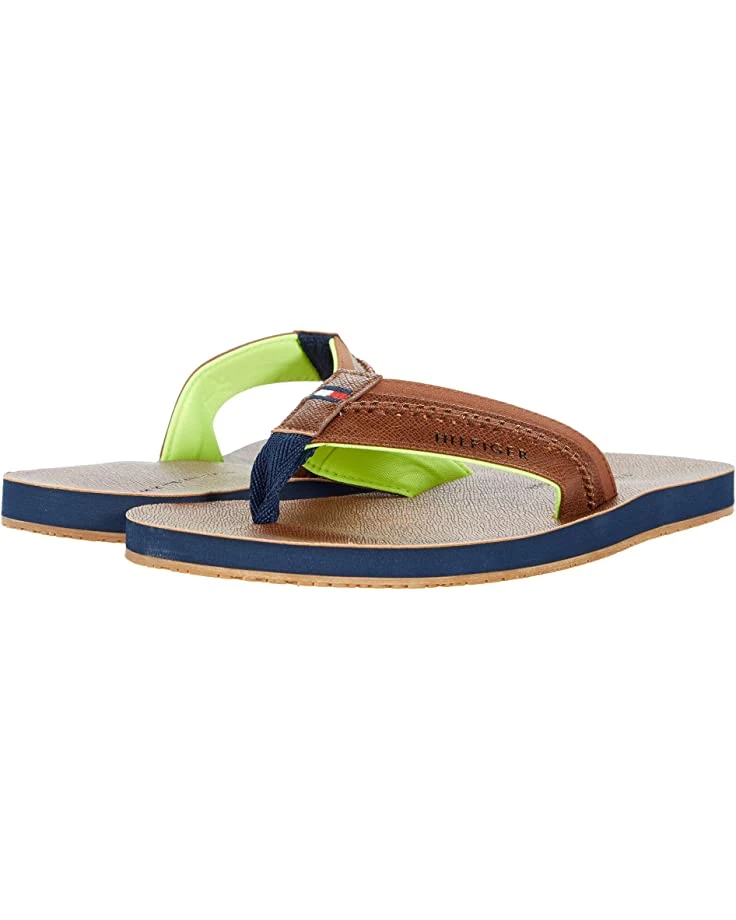- Feel the warm sun on your feet wearing the leather Tommy Hilfiger® Dembo flip-flop sandal with a textile toe post.