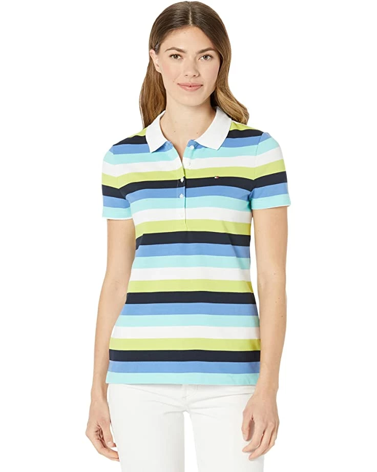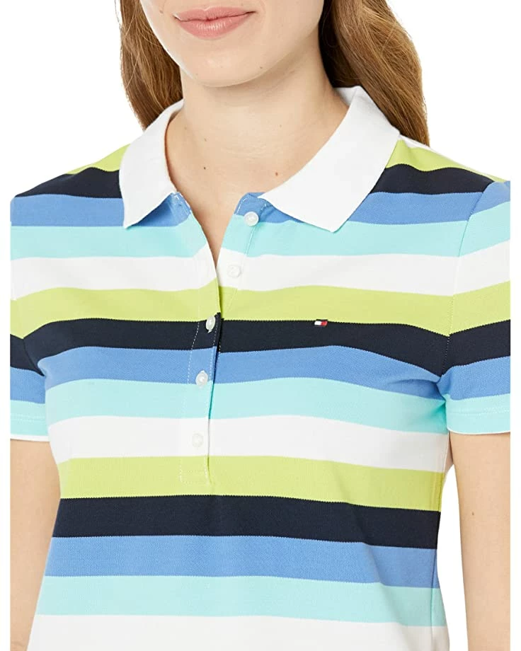 - Enliven your cool sporty look with the bold and bright colorful stripes featuring in the Tommy Hilfiger® Short Sleeve Stripe Polo.