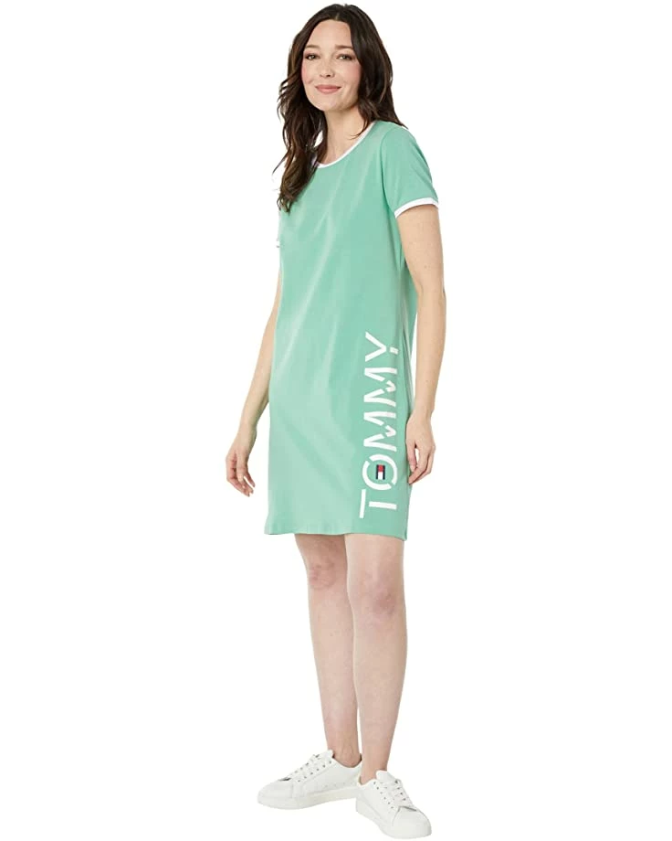 - Hit the streets in sporty-chic beauty wearing the Tommy Hilfiger® Short Sleeve Vertical Logo Dress.
