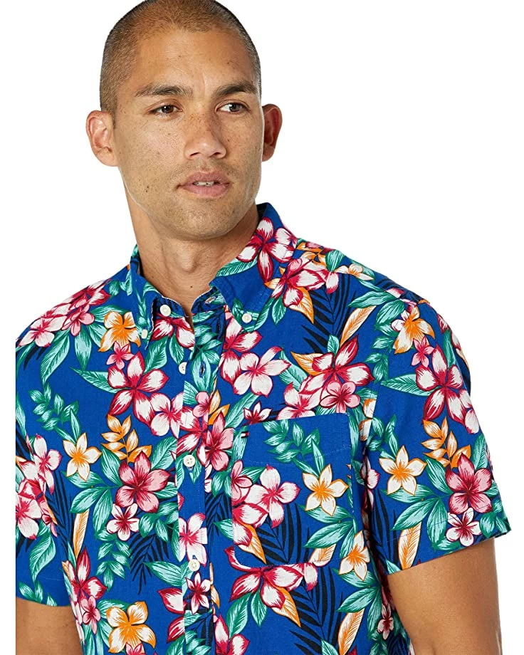 - Make a statement and set the workplace ablaze in the Tommy Hilfigerยฎ Linen Short Sleeve Button-Down Shirt in Custom Fit.