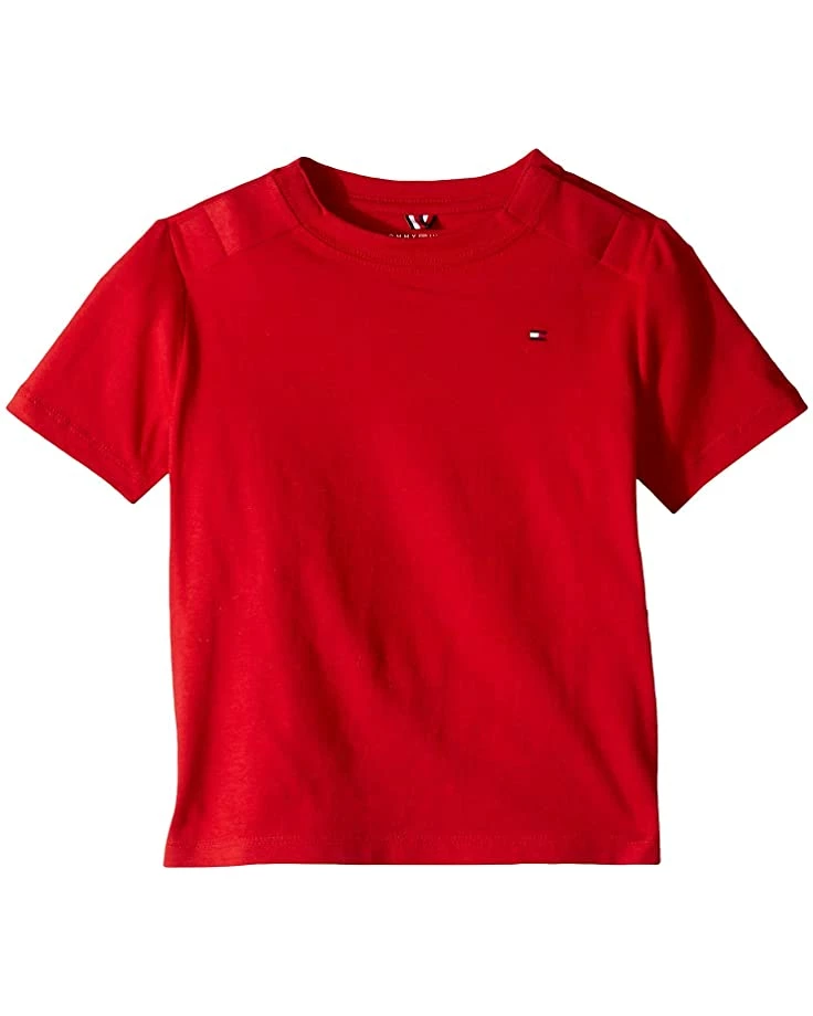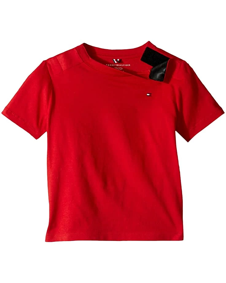 - Tommy Hilfiger boys’ T-shirt. Our goes-with-everything tee in soft-washed cotton, a best-seller for a reason. Dressing time is easier than ever thanks to VELCROยฎ brand closures at the shoulders that conveniently expand the neck opening. Part of our Adaptive Collection, designed for ease of dressing in classic Tommy style.