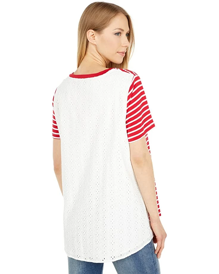 - You’re ready for weekend fun in the cool Tommy Hilfiger® Woven Back Tee.