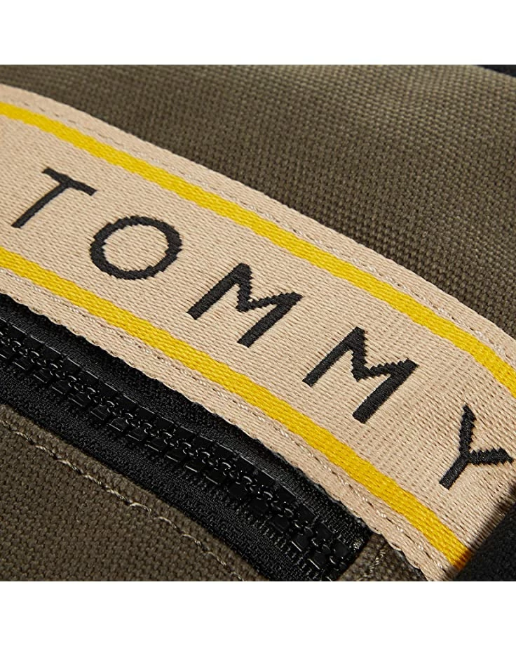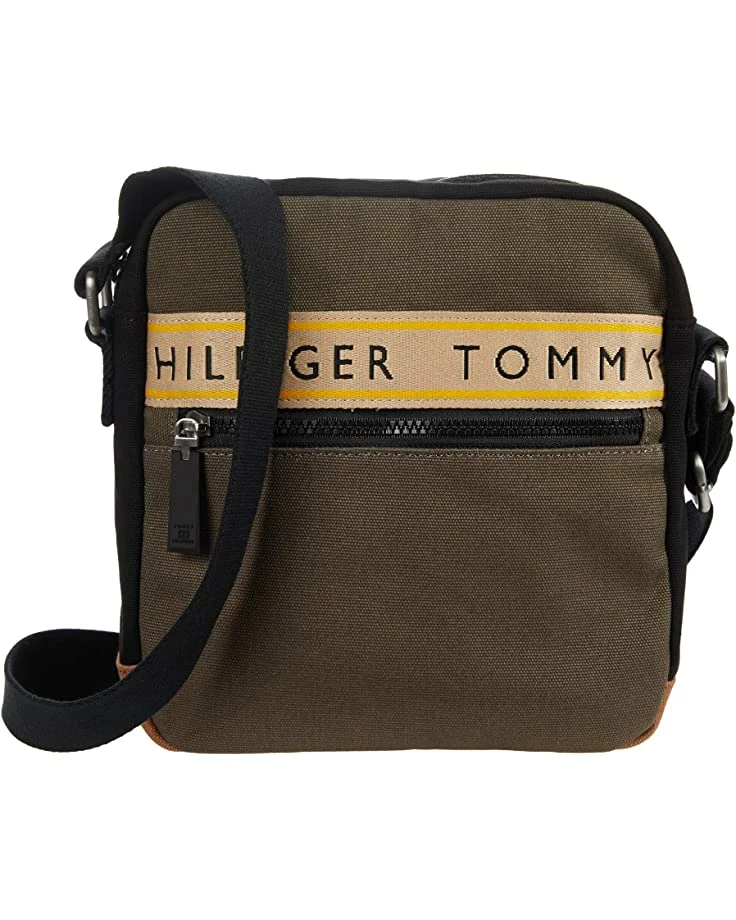 - Get out traveling with the Tommy Hilfigerยฎ Hayes – Crossbody – Canvas with Taping. This canvas messenger bag is crafted with an attached adjustable strap, logo name embroidered strip on the front, zippered pocket at the front, back pocket at the back, zippered top closure and one interior zippered pocket to hold all of your essentials.