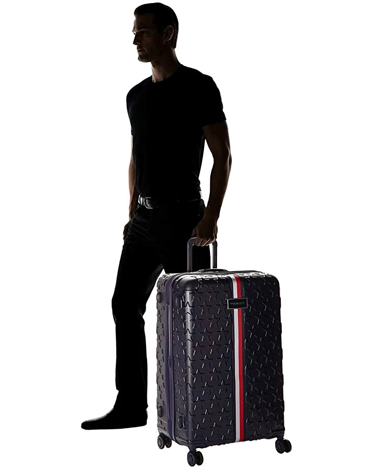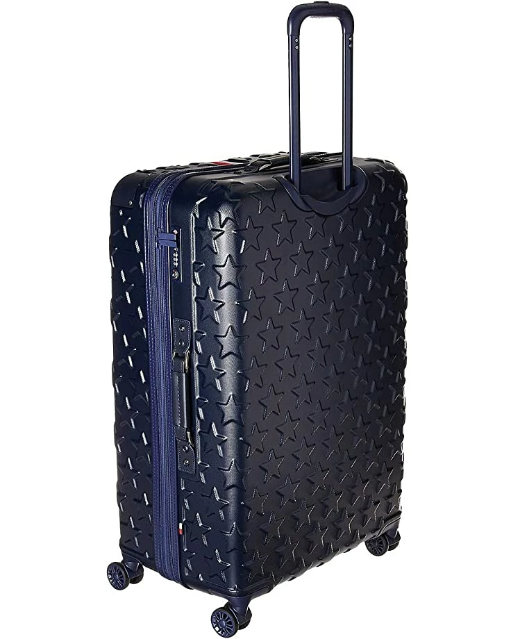 - The Tommy Hilfiger® 28″ Starlight Hardside Upright suitcase is crated from durable polycarbonate and features a locking aluminum handle and four multi-directional spinner wheels for easy movement through busy terminals.