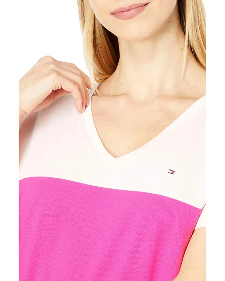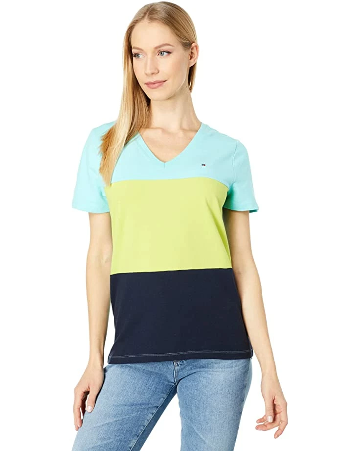 - Get compliments for your sleek look wearing the Tommy Hilfigerยฎ V-Neck Pique Color-Block Tee.