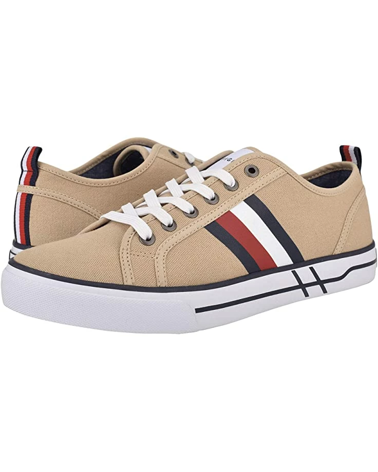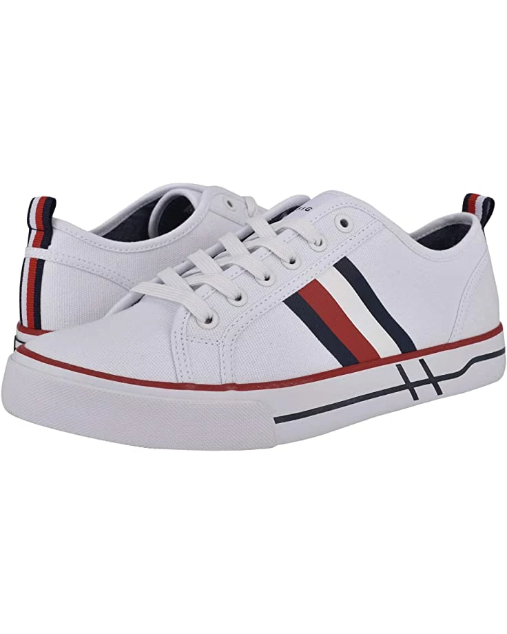 - Tommy Hilfiger stripe style on each side of shoe and back of heel