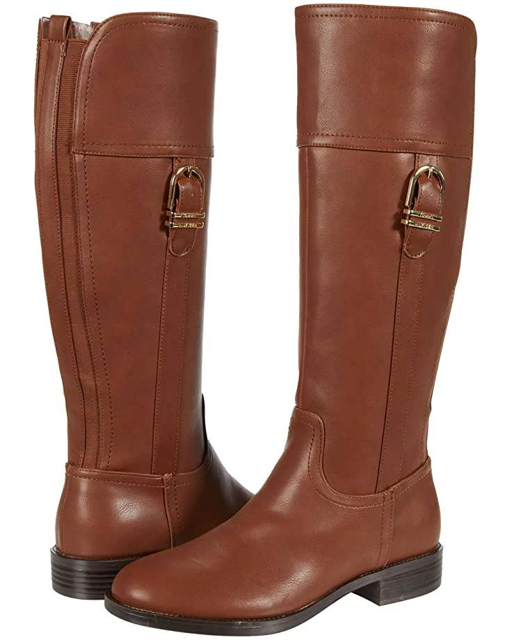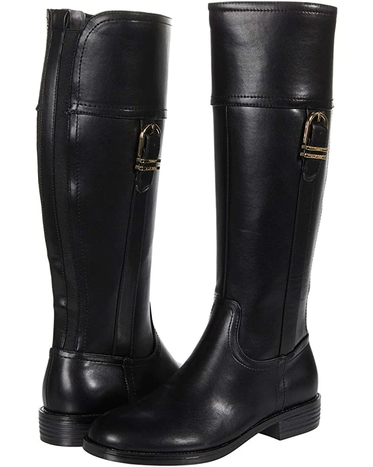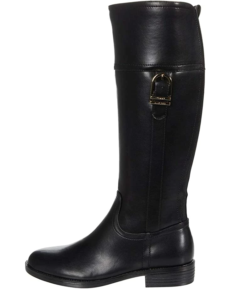 - Man-made faux leather Tommy Hilfiger® riding boots with decorative buckles at the shaft, elastic goring and pull tab at the back for easy on-and-off.