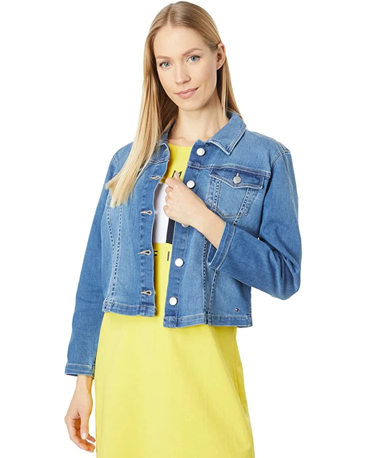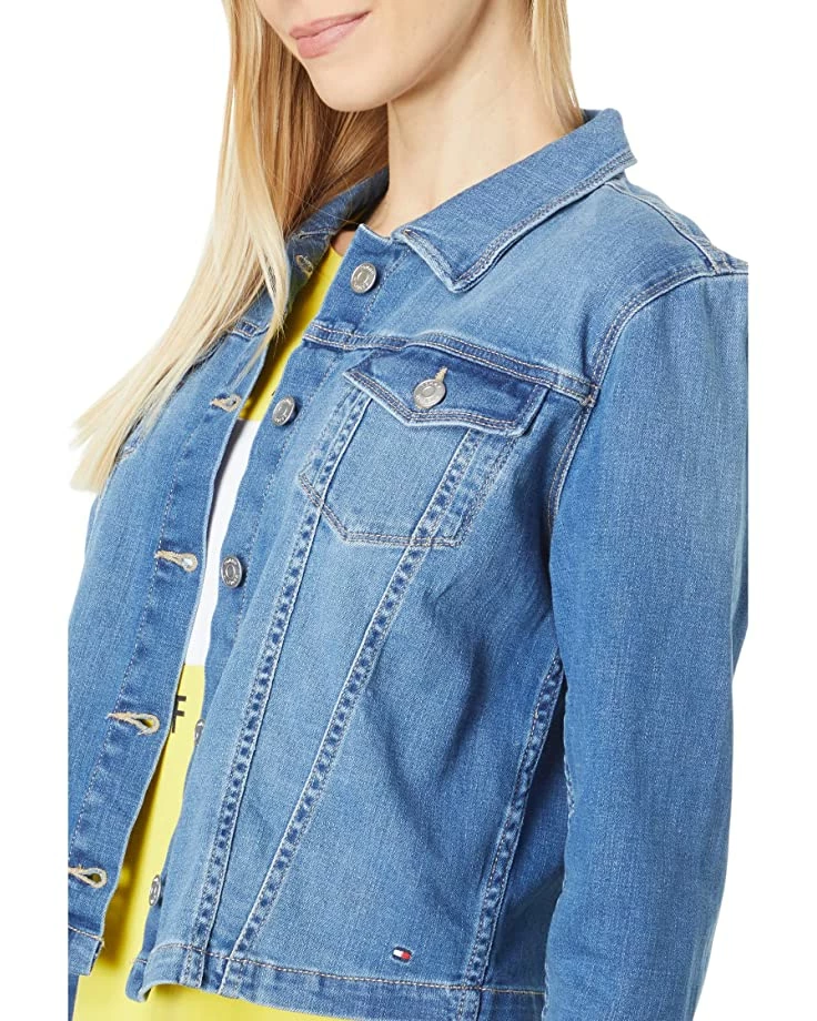 - Tommy Hilfiger® Denim Jacket. This jean jacket features chest and hand slip pockets with detailed stitching for a classic and clean look.
