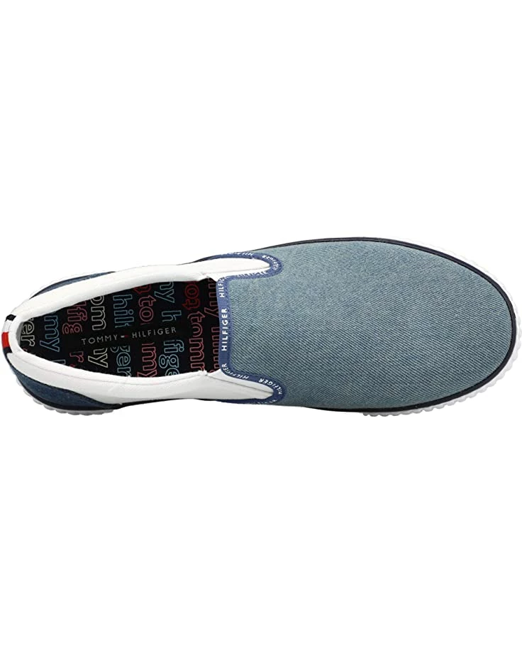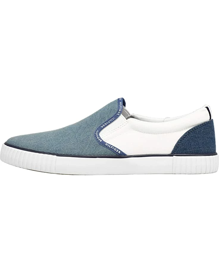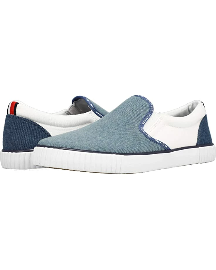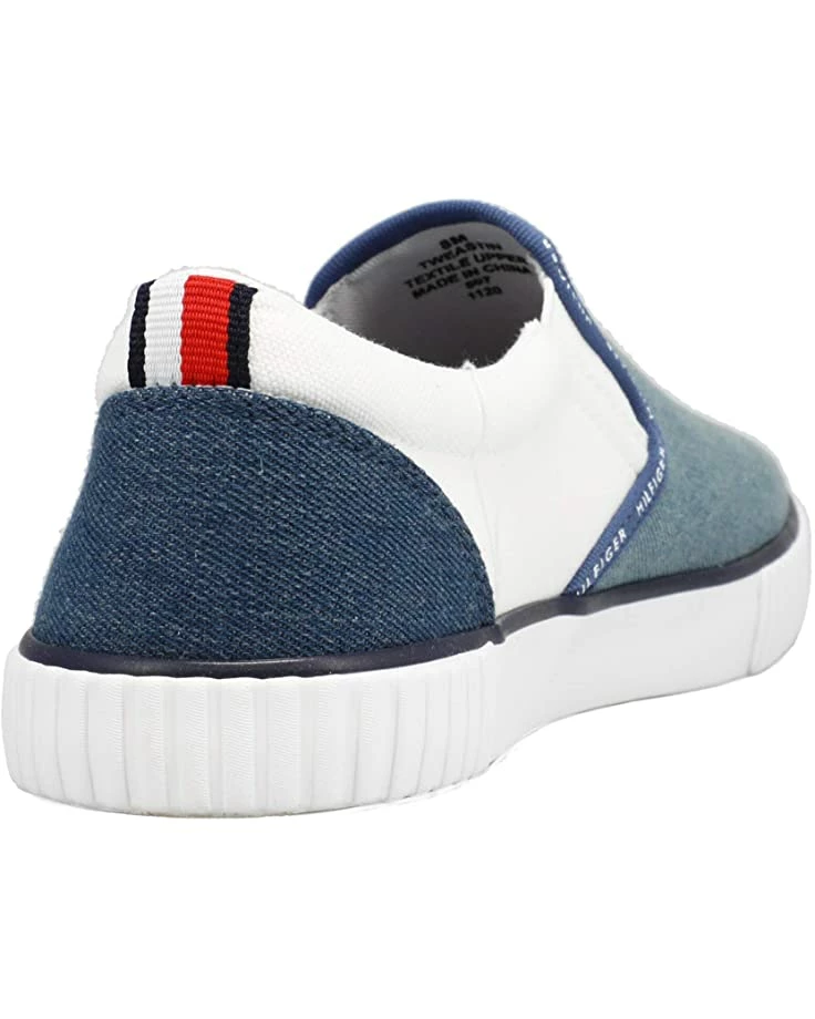- The Tommy Hilfiger® Eastin slip-on shoes has classic good looks with a signature red, white and navy logo on back.