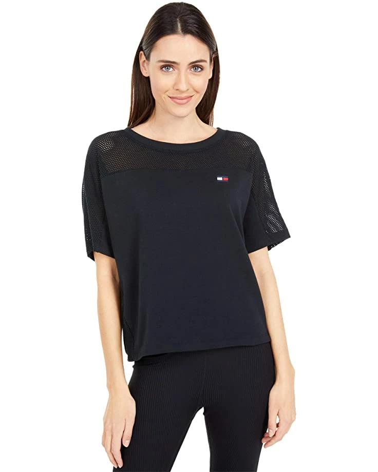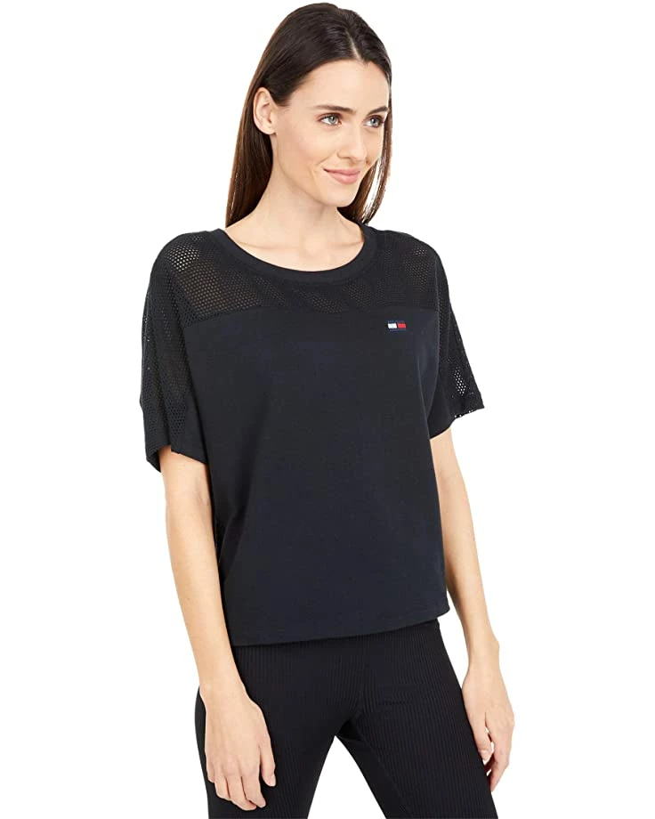 - Keep it simple, yet sporty, in this Tommy Hilfigerยฎ Mesh Blocked Short Sleeve Pullover tee.