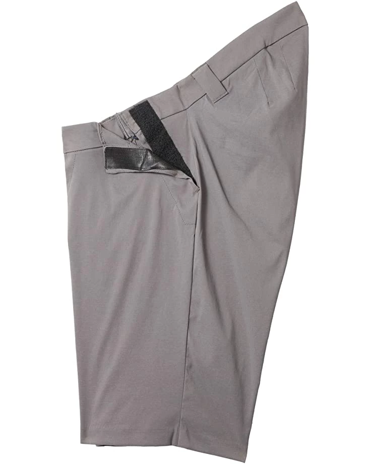 - Double placket, VELCRO® brand closure replaces traditional button/zip fly. Button and loop adjustable waist.