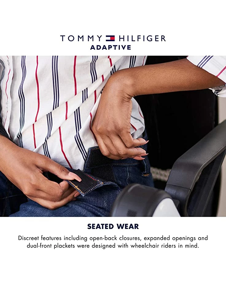- Tommy Hilfiger® men’s short. Tommy’s classic chino short gets a fresh update in technical, stretch fabric that wicks away moisture. Part of our Adaptive Collection, designed for ease of dressing in classic Tommy style.