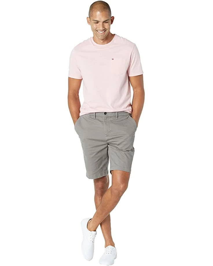 - Elevate your weekend style with the Tommy Hilfiger® Chino Shorts, complete with a flat front, front slant pockets, and back buttoned welt pockets.