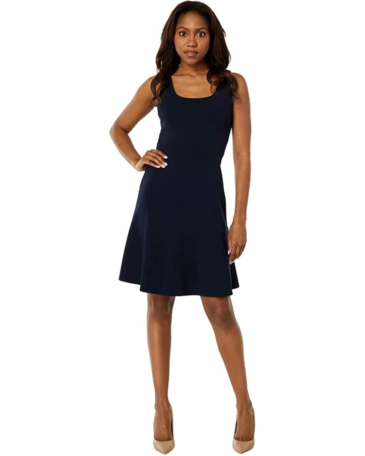 Outlet 🎁 Tommy Hilfiger Dresses Sleeveless Scuba Crepe Square Neck Seam Fit-and-Flare 🛒