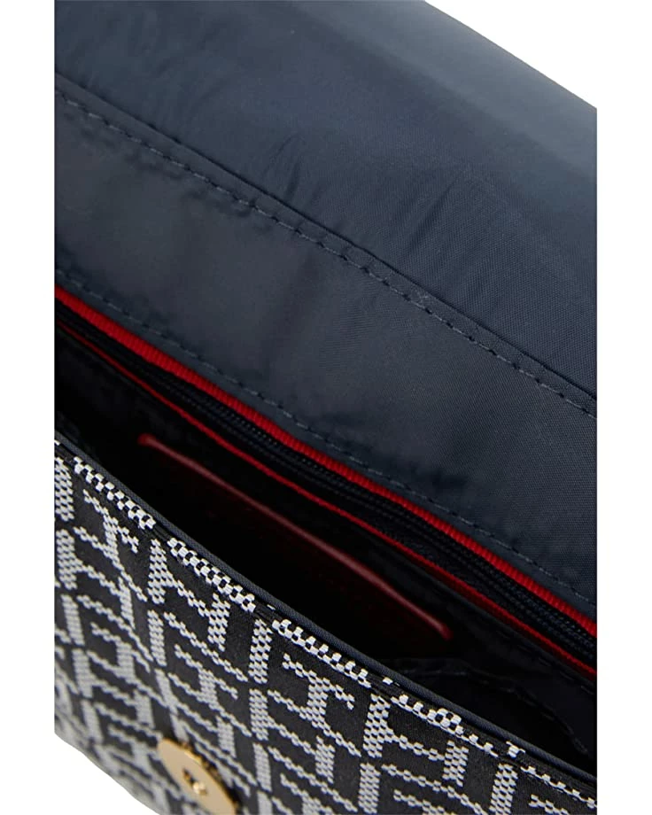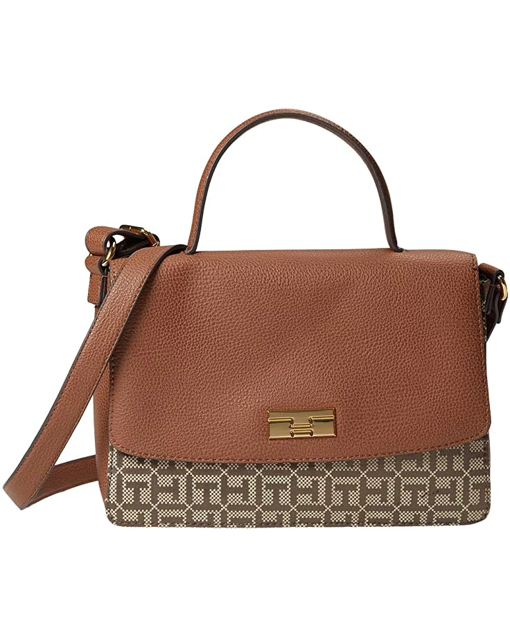 - Maximize your style quotient with the Tommy Hilfiger® Tiffany II – Convertible Flap Satchel – Square Monogram Jacquard with Pebble PVC.
