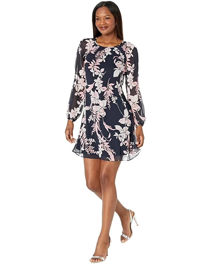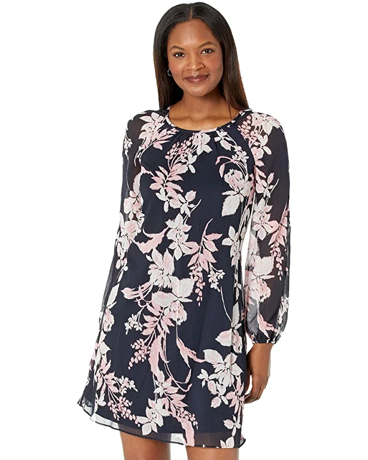 - Make a mark wearing the Tommy Hilfiger® Long Sleeve Hampshire Fields Chiffon Trapeze dress that looks chic and offers a high on fashion frenzy look.