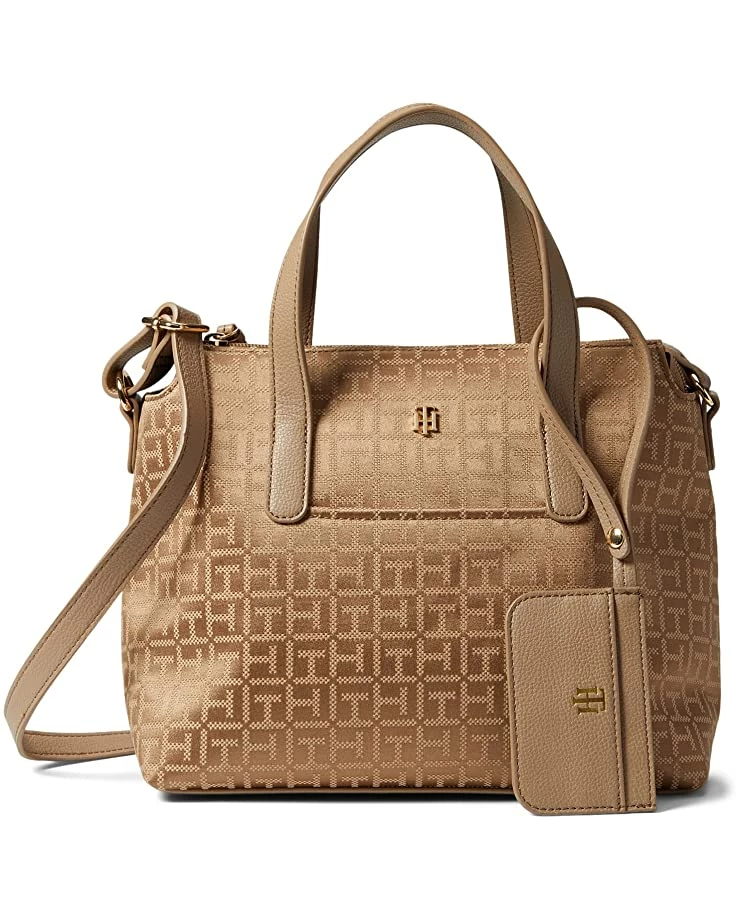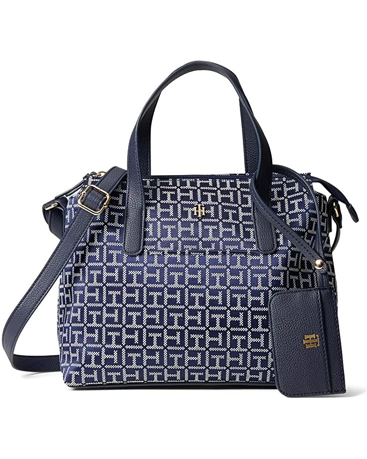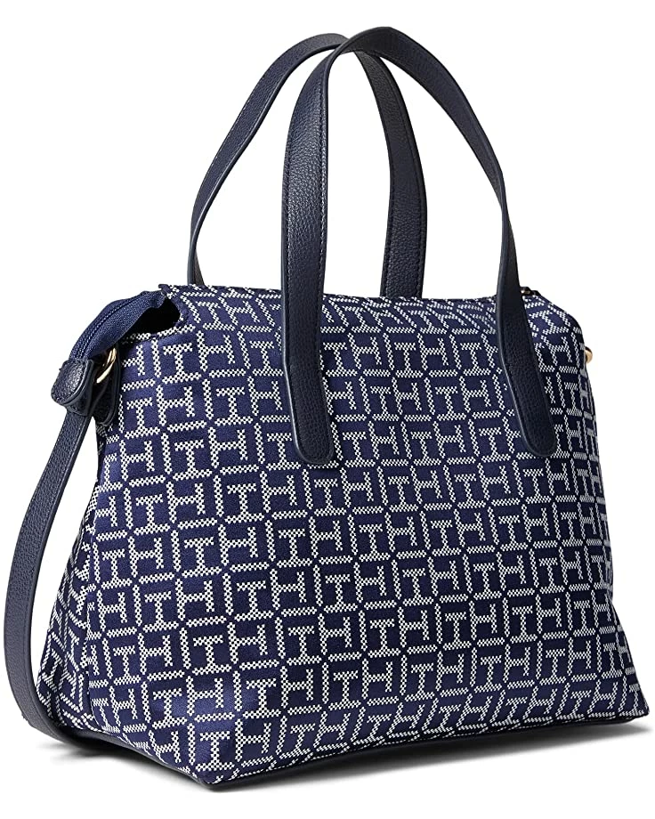 - Designed for optimal space and style, the Tommy Hilfiger® Lynn II Convertible Satchel w/ Pouch Square Monogram Jacquard is perfect for your office meeting or short road trips.