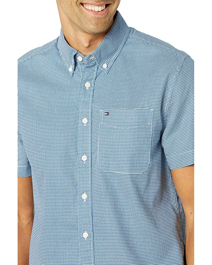 - Pop that collar and make the day yours sporting the Tommy Hilfigerยฎ Essentials Short Sleeve Button-Down Shirt in Custom Fit.