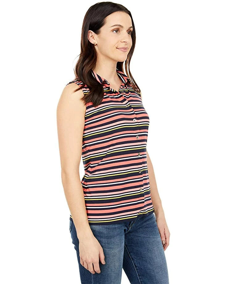 - Start the spring off right in the Tommy Hilfiger® Sleeveless Collared Button Front Stripe Knit features a full front button collared shirt boasting all over striped print.