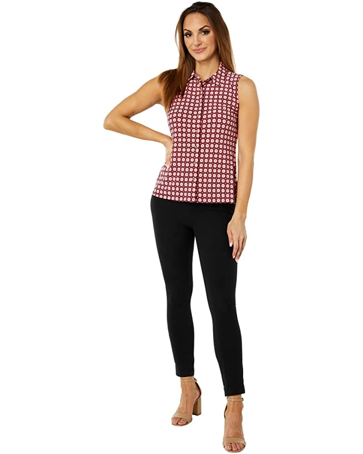 - Don a style and classy outfit for your everyday casual look wearing the Tommy Hilfigerยฎ Sleeveless Geo Collared Button Front Knit.